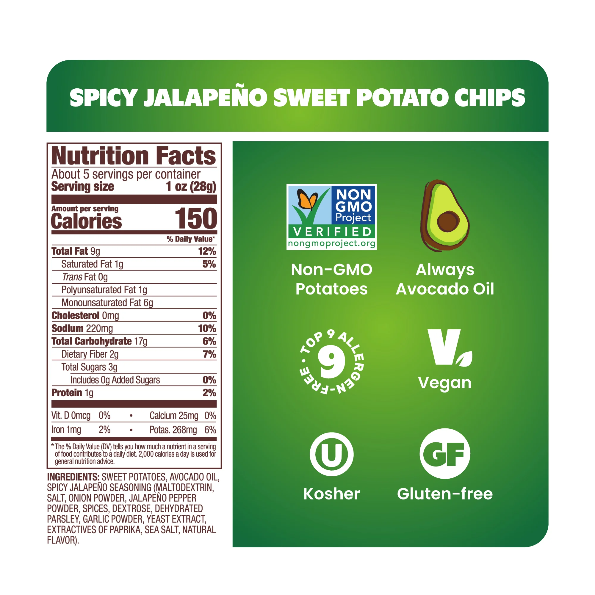 UNA POTENCIA NUTRICIONAL PARA CADA DIETA – Prepárate para una experiencia de snack llena de nutrientes. Todos nuestros super snacks son veganos, libres de gluten, kosher, sin granos y libres de los 9 principales alérgenos. Nuestras papas de camote con aceite de aguacate son una opción sabrosa y sin culpa. Cargadas de fibra, con un crunch irresistible, y hechas con ingredientes ricos en antioxidantes, estas papas de camote con aceite de aguacate superan los snacks comunes y brindan una experiencia de super snack.